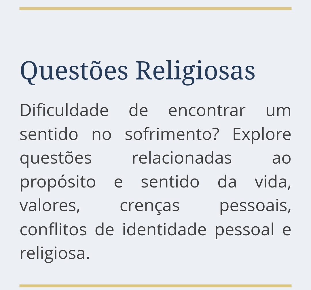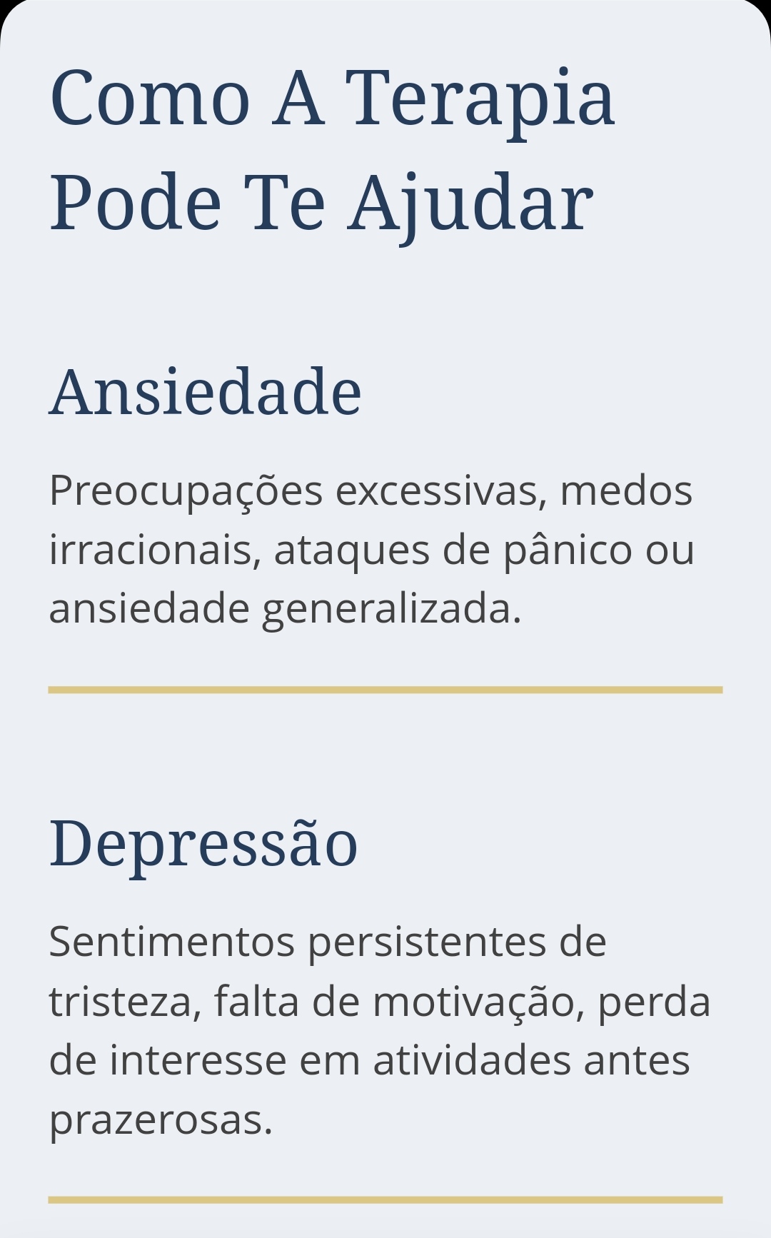 Portanto, ao escolher a Conexão Terapêutica, você está optando por uma abordagem de cuidado completa, que abrange todos os aspectos essenciais para uma vida plena e saudável: corpo, mente e espírito. Estamos aqui para guiá-lo (a) nessa jornada de autodescoberta e transformação, rumo ao equilíbrio e bem-estar integral.